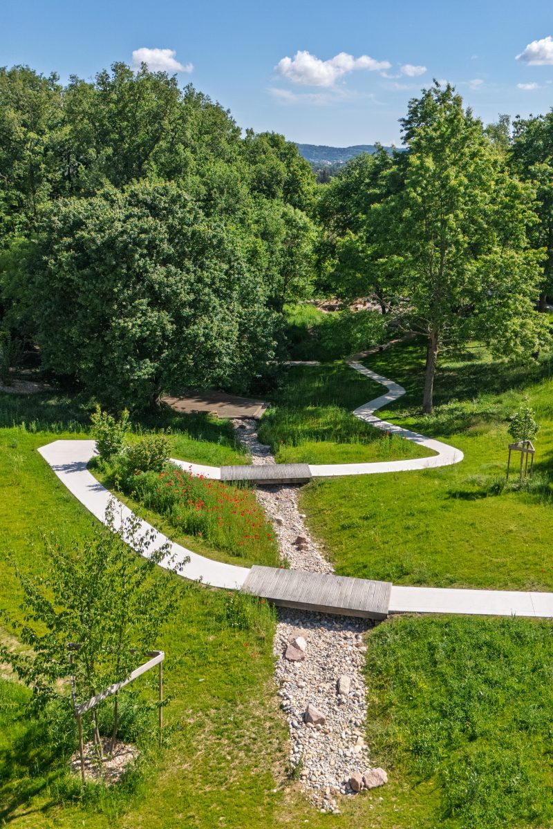 Sur nos projets paysagers, de génie écologique et sportifs : palette végétale adaptée au climat, intégration de solutions d’économie circulaire, gestion des sols…